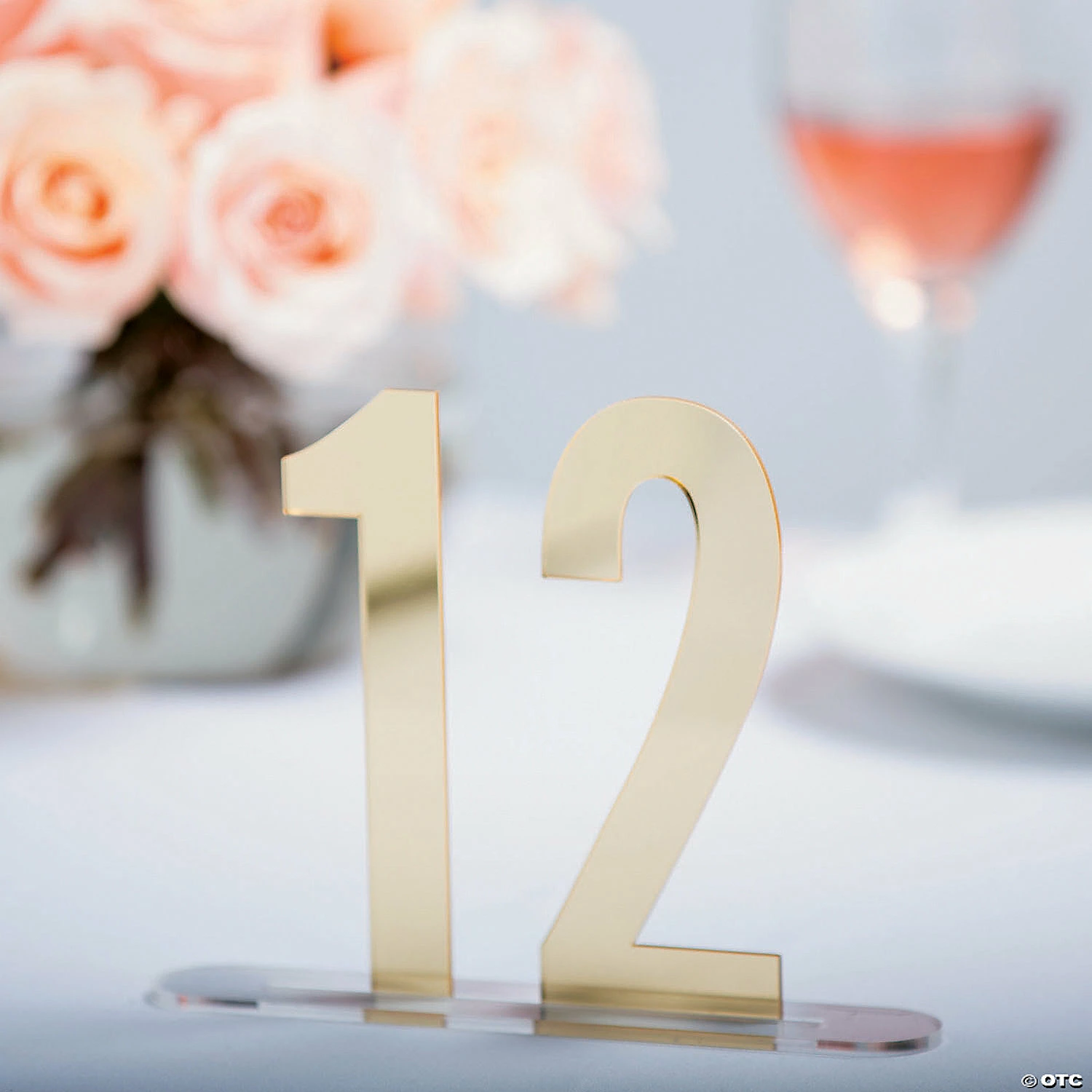 Add glam and flash to your dining tables with these awesome gold mirror table numbers! This set includes numbers 1 through 12 and is perfectly sized for a wedding reception, corporate event and other special occasion. These table numbers will help you keep your seating chart more organized and help guests find their seats. Save them and reuse them! Includes bases. Acrylic. 5 1/2″ Simple assembly required. © OTC