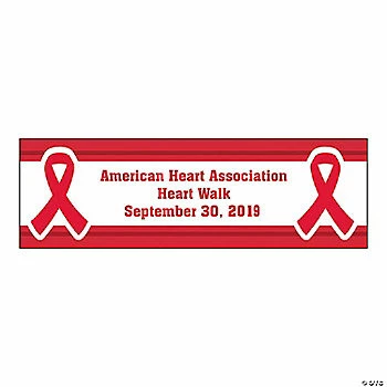 Make your awareness extra personal when you hang up one of these Personalize Awareness Ribbon Banners. The perfect addition to your event supplies, personalize these vinyl banners with 3 lines of 26 characters/spaces per line. Great for marathons, benefit dinners, fundraising events and more. Vinyl. Includes adhesive tabs for hanging. Β© OTC